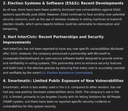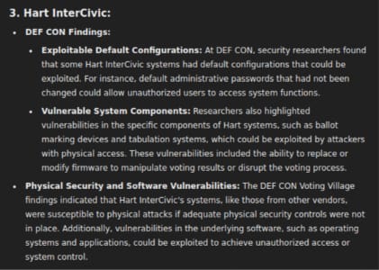 The landscape of U.S. voting systems is complex and challenging, with various devices and configurations spread across multiple jurisdictions. As demonstrated by the recent vulnerabilities discovered in major vendors’ systems, securing these systems is not a one-size-fits-all solution. It requires a nuanced, multifaceted approach that includes rigorous cybersecurity practices, strong physical controls, continuous audits, and robust coordination among all stakeholders involved.