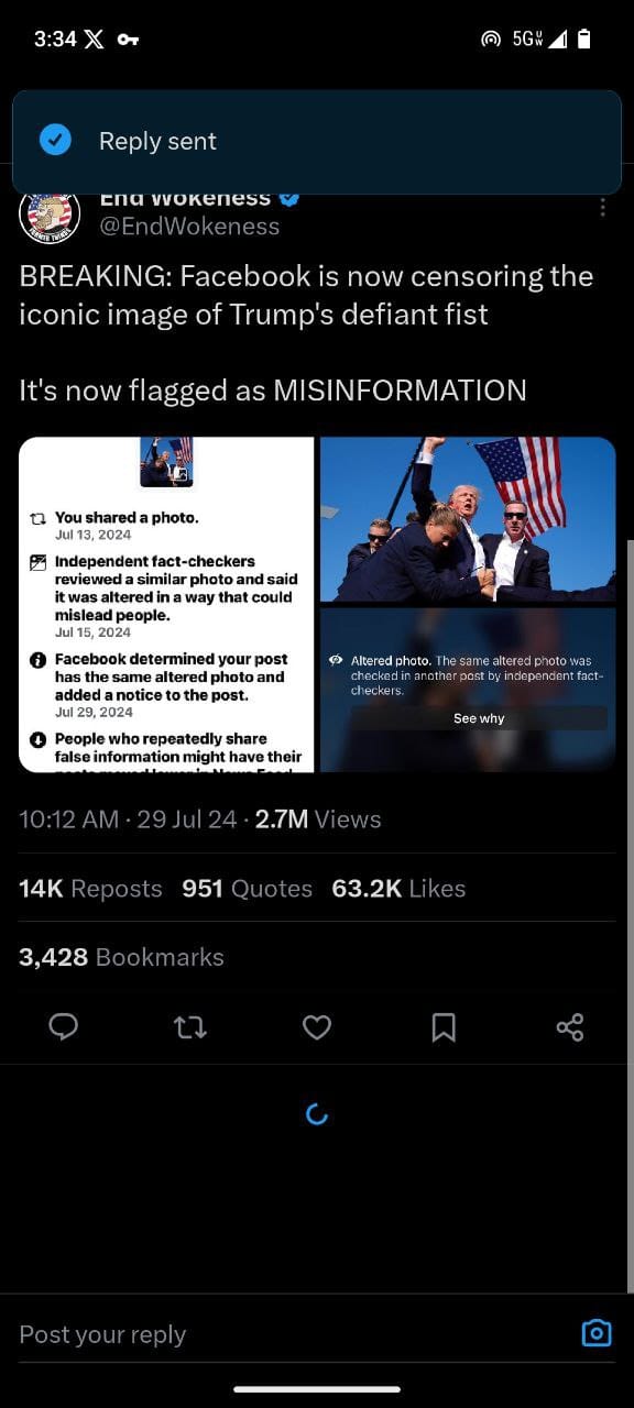 - This post asserts that Facebook flagged an iconic image of Trump’s defiant fist as misinformation. The post includes a screenshot indicating that independent fact-checkers deemed a similar photo as misleading.4. Snapchat AI Interaction: