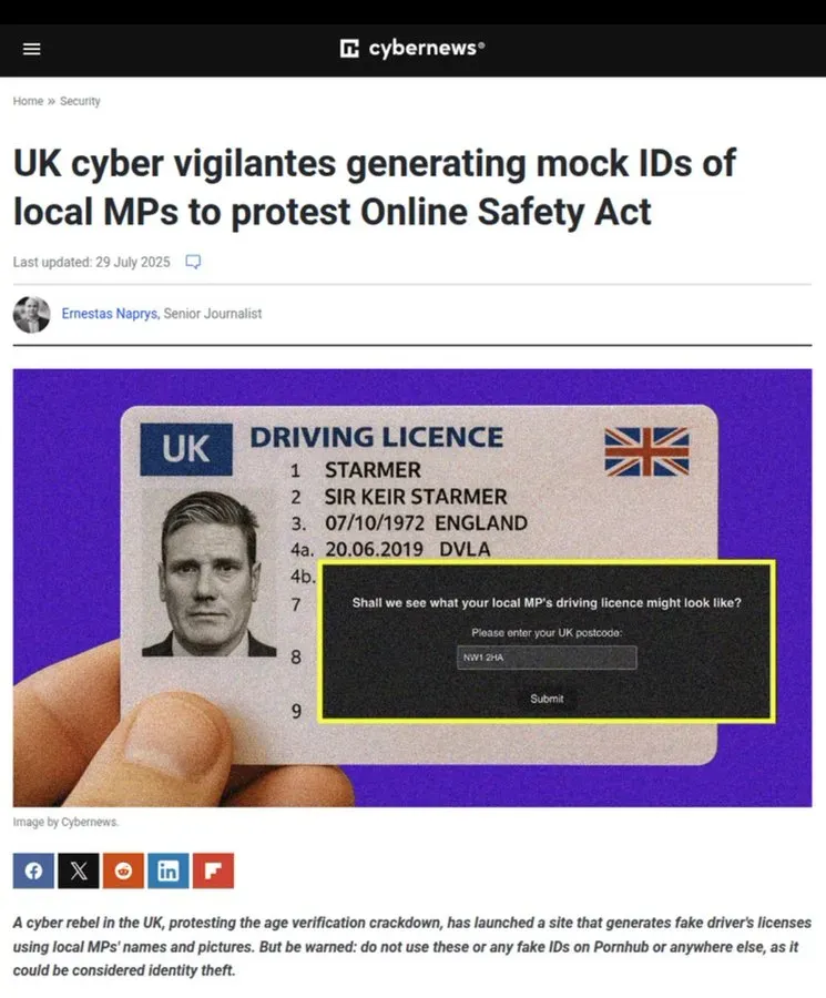 The UKās Online Safety Act has officially gone into effect, and the backlash is already taking creative forms. A software developer known as āTim Jeā has launched a provocative digital protest at use-their-id.com, creating AI-generated fake driving licenses featuring local Members of Parliament. While clearly satiricalāand definitely not intended for actual useāthis protest raises serious questions about the privacy implications of the UKās new age verification requirements.