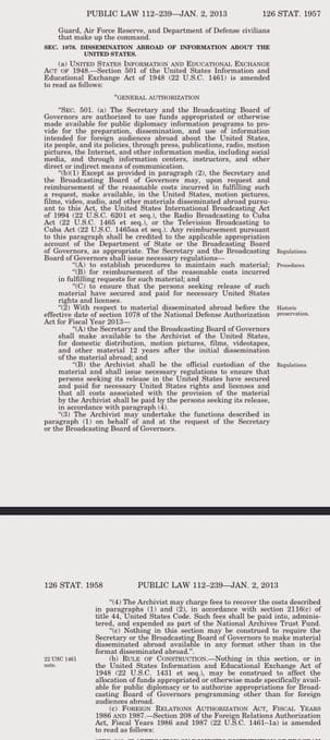 The 2013 amendment allows the State Department and Broadcasting Board of Governors to: